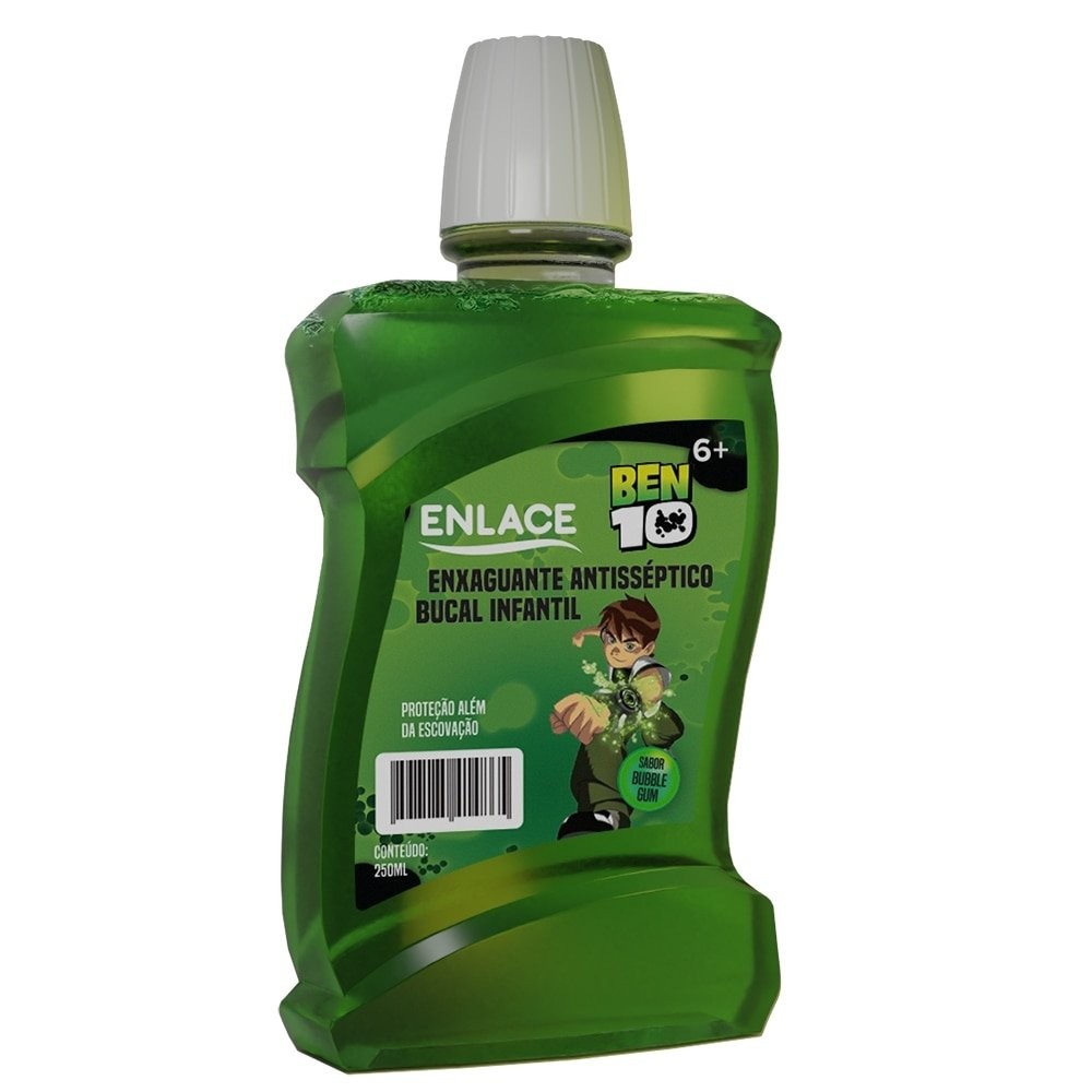 Características Principais do Produto: Marca: Enlace Tema: Ben 10 Contém Flúor: Sim Sabor: Tutti-Frutti Volume: 250 ml Informações Adicionais do Produto: Ajuda no fortalecimento do esmalte dos dentes Remove o mau hálito Combate as cáries Com flúor Não contém álcool Divertido e com gostinho de Tutti-Frutti Fornecedor: Rabbit