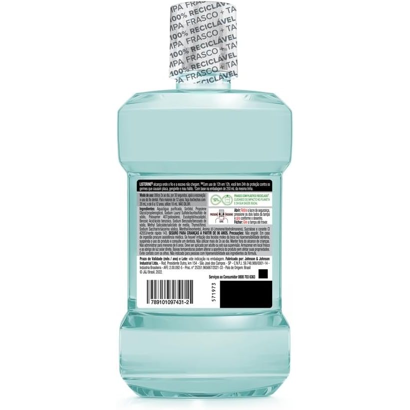 Enxaguante Bucal Listerine Zero Álcool 500ml O Enxaguante Bucal Listerine Zero Álcool 500ml oferece proteção eficaz contra os germes bucais com uma fórmula suave e livre de álcool. Ideal para quem busca uma rotina de higiene bucal eficiente sem abrir mão do conforto e do frescor. Principais Características: • Fórmula sem álcool, com sabor suave, ideal para uso diário • Ação antisséptica que elimina até 99,9% dos germes causadores de mau hálito, placa e gengivite • Alcança regiões que a escova e o fio dental não conseguem atingir Benefícios: • Proporciona hálito fresco por mais tempo • Reduz a placa bacteriana • Previne problemas gengivais • Sensação de limpeza completa sem ardência Diferenciais do Produto: • Eficácia comprovada na proteção bucal com fórmula livre de álcool • Suavidade no uso, sem irritar a mucosa oral • Indicado para pessoas com sensibilidade ou que preferem fórmulas mais leves Especificações Técnicas: - Peso: 500ml Instruções de Uso: - Utilize 20ml do produto duas vezes ao dia, após escovar os dentes. - Bocheche por 30 segundos e descarte o líquido. - Não é necessário enxaguar com água. - Não ingerir. Avisos e Precauções: - Não ingerir. - Uso externo. - Manter fora do alcance de crianças. - Em caso de irritação, interromper o uso e consultar um profissional de saúde. O que está incluso? - 1 unidade de Enxaguante Bucal Listerine Zero Álcool 500ml ---- DÚVIDAS FREQUENTES ---- Os produtos são originais? Sim. Todos os nossos produtos são originais. Emitem nota fiscal? Sim. Emitimos nota fiscal para todos os pedidos.