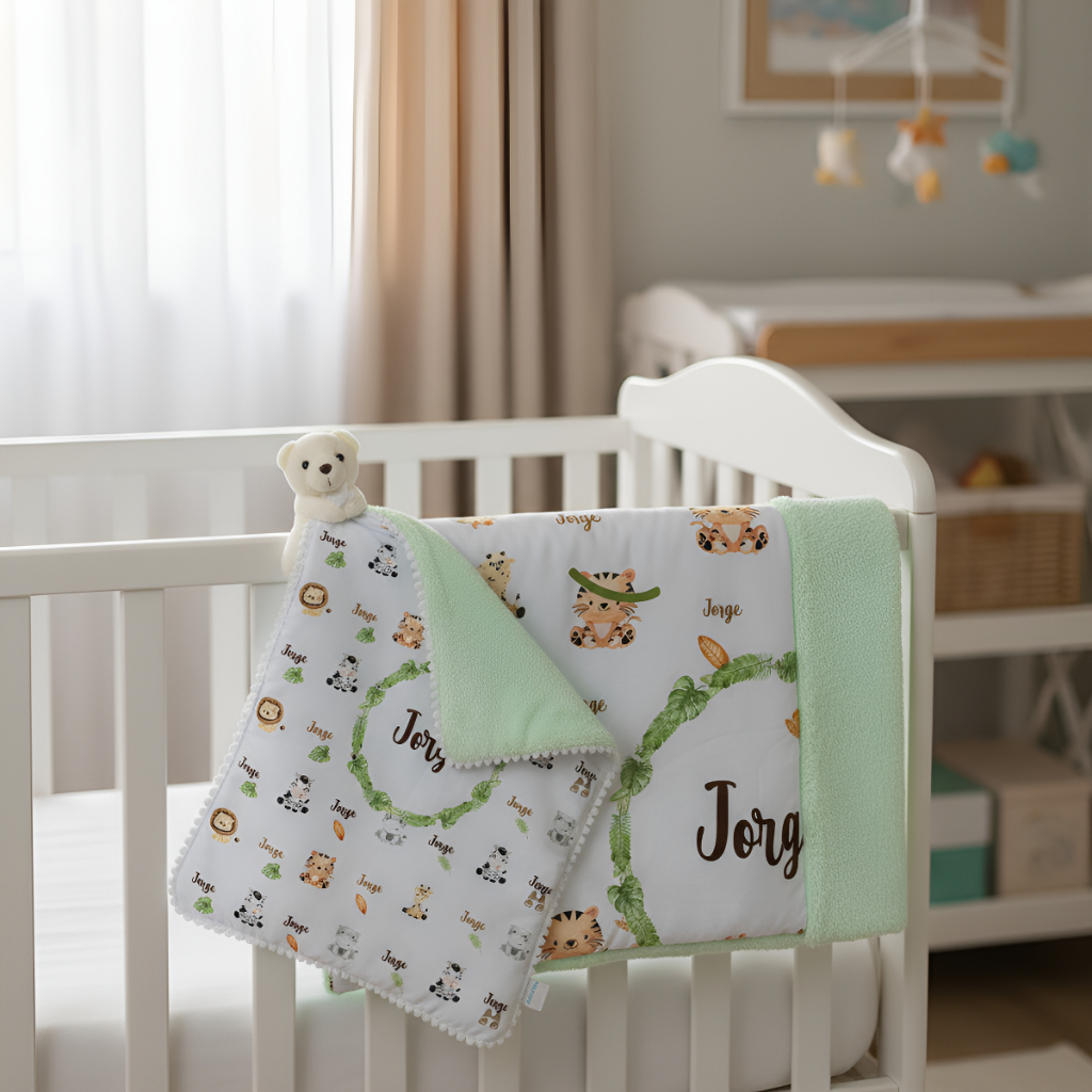 Manta medindo de 70x80 cm, Naninha 30x40. Confeccionada em Gabardine com Plush ou microfibra pelúcia Tudo feito com amor e carinho pro seu bebê. COMO FAZ PARA PERSONALIZAR? Após a compra enviamos nosso contato para acertar todos os detalhes da personalização. TEM MAIS TEMAS? Temos mais de 800 temas disponíveis, vc pode enviar seu tema também QUAL O PRAZO DE ENVIO? 9 dias a partir da data da compra TEM MAIS PRODUTOS? TEMOS: Babador Bandana Manta 100x80 Manta 70x80 Naninha Macacão RN e P Prendedor de Chupeta Laço ou Tiara Saco de Dormir Saquinho Maternidade Trocador Porta Lenço Caderneta Vacina Necessaire Touca Luvas Macacão com Capuz Paninho de Boca Kit com 3 Toalha Fralda com Capuz Hora do banho (kit higiene) Body Kit Toalha (Banho, Rosto e Mãos) 150 Toalha de Banho 90,00 Macacão M, G e GG MONTE SEU KIT E DEIXE NOSSA EQUIPE ARRASAR. ** Prazo para produção das artes de até 72horas. Podendo ser enviado antes. Obs.: O modelo do Pompom lateral pode variar de acordo com a disponibilidade em estoque. ( NÃO ACOMPANHA O LAÇO ) (A naninha é enviada com o urso padrão na cor bege) Pelúcias elefante, leão, urso marrom ou segundo modelo de urso bege tem um valor adicional.