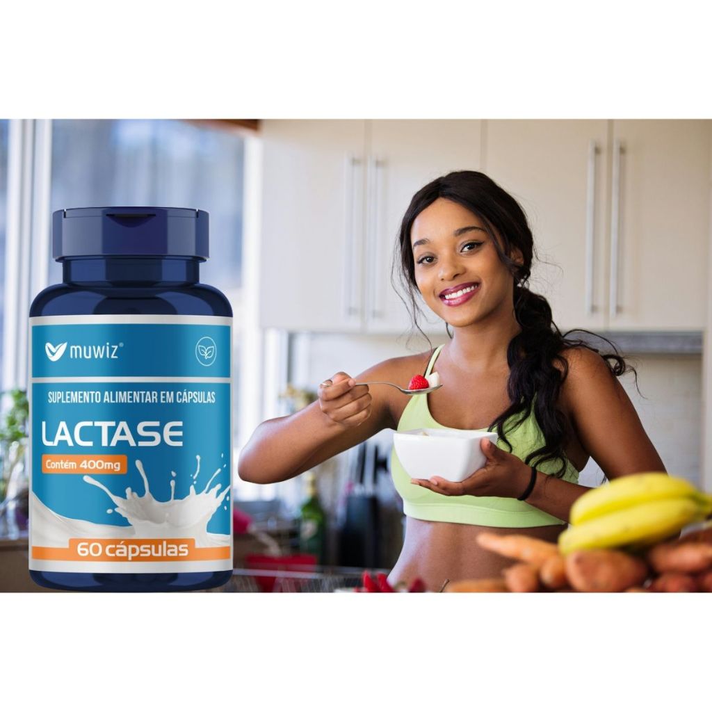 Enzima Lactase 400 MG 60 Cápsulas para Intolerantes à Lactose - Muwiz