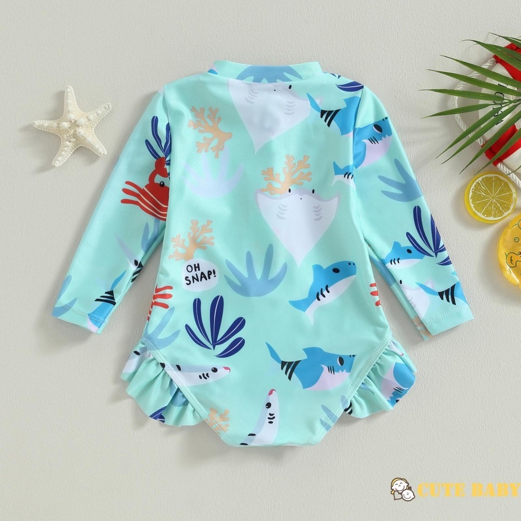 Eph-Crianças Meninas Maiô Manga Longa Animal Marinho Estampa Swimwear para Verão Praia, 0-5 Anos