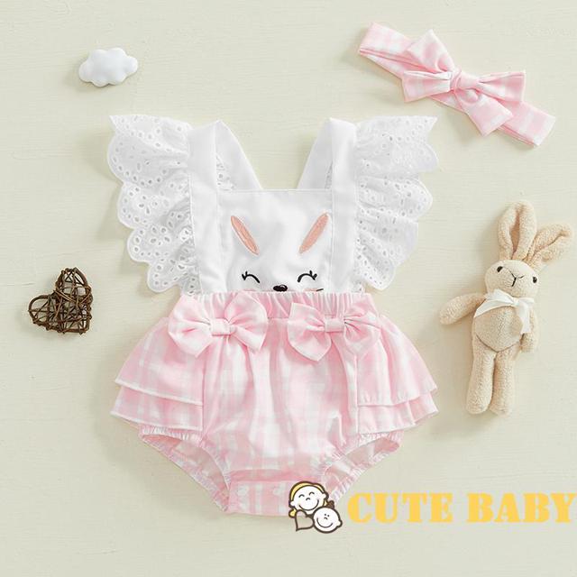 Eph-Infantil Bebê Meninas Verão Páscoa Voando Sem Mangas Cenoura Impressão Macacão Com Arco Bandana,0-18 Meses