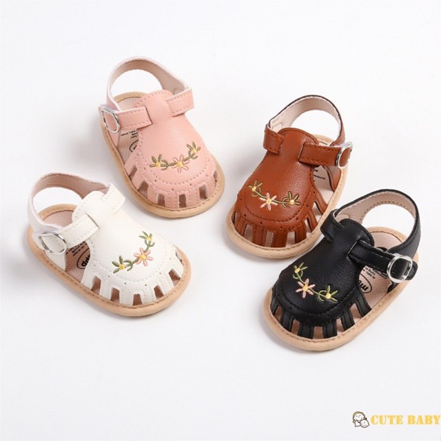 Eph-Sandálias Infantil Bebê para Meninas Couro PU Antiderrapante Bordado Flor Sapatos de Verão,0-18 Meses