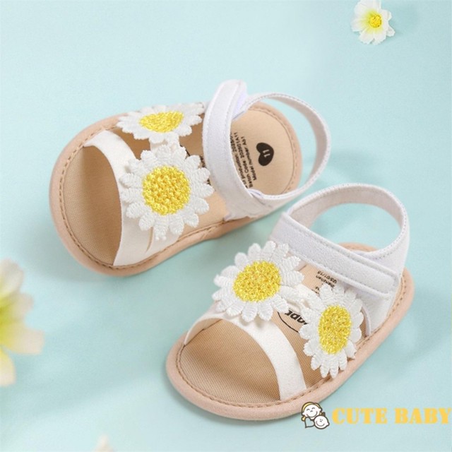 Eph-Sandálias Infantis Para Meninas Flores Elegantes Antiderrapantes Sapatos Baixos De Verão Uso Diário Casual,0-18 M