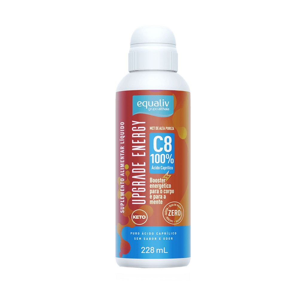 INFORMAÇÕES DE DESTAQUE Suplemento Alimentar Líquido C8 como fonte de energia rápida Com TCMs (Triglicerídeos de Cadeia Média) Sem óleo de palma Zero glúten Zero lactose Zero carboidratos DESCRIÇÃO O UpGrade Energy da Equaliv é um suplemento alimentar líquido formulado com TCMs (Triglicerídeos de Cadeia Média), especificamente o C8, conhecido por sua rápida metabolização no organismo. Ideal para quem busca uma fonte prática de energia, ele é livre de glúten, lactose, carboidratos e óleo de palma. Seu consumo pode ser adequado para pessoas que seguem dietas como cetogênica, low-carb ou paleolítica. Desenvolvido com óleo de coco ultra concentrado, o UpGrade Energy pode ser uma alternativa para complementar a rotina alimentar de forma prática e versátil. COMPOSIÇÃO Óleo de coco ultra concentrado (Triglicerídeos de Cadeia Média - Ácido Caprílico). ALÉRGICOS: Não contém alergênicos. NÃO CONTÉM GLÚTEN. SUGESTÃO DE USO Suplemento alimentar de uso adulto. Ingerir conforme a recomendação de um profissional da saúde ou seguir as instruções da embalagem. Não exceder a dose diária recomendada.