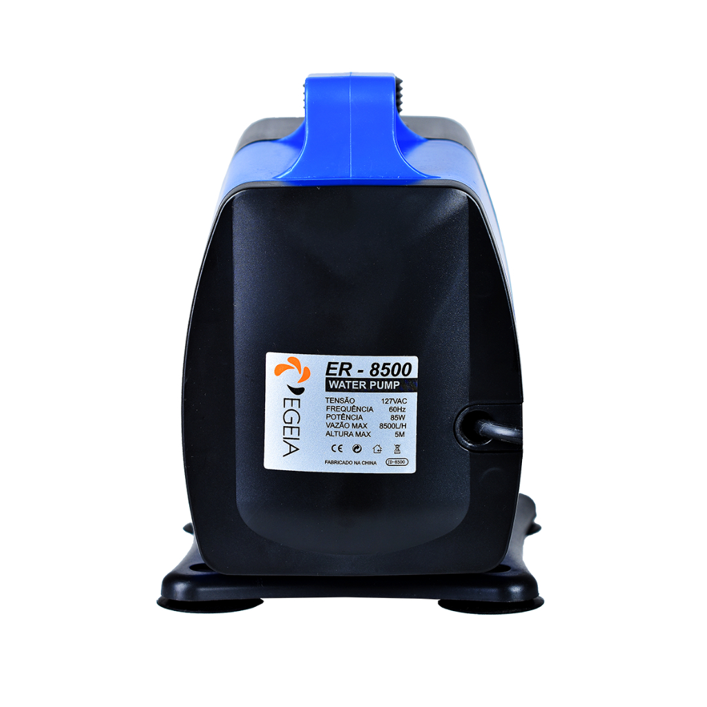 A bomba ER-8500 possui uma vazão máxima de 8500 L/h. Ela pode funcionar dentro e fora da água. Utilizando na configuração submersa, a grade impedirá que os detritos entrem na bomba. Ou simplesmente ligue a mangueira à tubulação conectada à sua lagoa ou ao aquário. O rotor é feito com cerâmica resistente à corrosão, tornando-o ideal para uso em água salgada. Essa bomba anfíbia é uma excelente escolha para atender às necessidades de circulação de qualquer aquário de água doce ou salgada de médio a grande porte. Ela é completamente submersível e é ideal para sua configuração de lago ou hidroponia. A vazão é ajustável quando utilizada com a grade e é fácil de desmontar e limpar. Suas quatro ventosas facilitam a aderência ao fundo de qualquer superfície escorregadia. Usamos resina epóxi para encapsular a carcaça da bomba ao redor do motor para um isolamento totalmente selado. A carcaça da bomba é feita de polietileno ABS novo de alta qualidade. Os cabos de alimentação e plugues são feitos de fio esmaltado de cobre UL no padrão ABNT. Especificações Técnicas: - Vazão máxima: 8500L/h - Coluna d´água máxima: 5,0m - Consumo: 85W - Dimensões (AxLxP): 16 x 10 x 19 cm - Diametro das saídas e entrada: 19 e 25mm - Peso: 2,350kg - Cabo de Alimentação: 2,8m - Padrão ABNT - Tensão de Alimentação: 127V/60Hz - Temperatura de Operação: 5 a 40°C - Eixo: Cerâmico Garantia: Este equipamento está garantido contra defeitos de materiais ou fabricação pelo período de 3 meses.