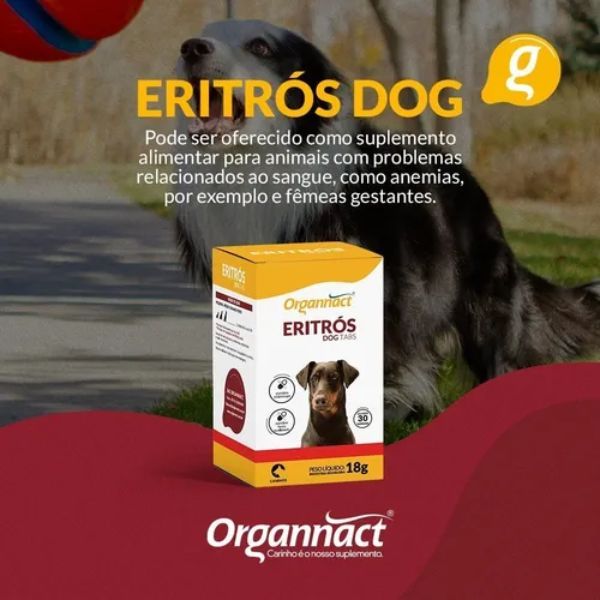 Eritros Dog Tabs 30 Tabletes Organnact Vitamina Anemia Ferro