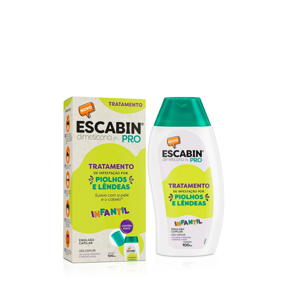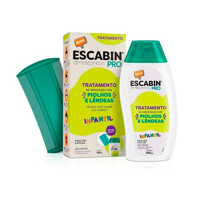 Escabin Pro 4% emulsão capilar é feito a base de dimeticona, substância que ajuda no combate a escabiose, formando uma camada de silicone no couro cabeludo.A escabiose é uma doença provocada por piolhos e lêndeas. Alivia a coceira sem prejudicar o couro cabeludo. Ele é livre de qualquer produto tóxico ou pesticida. Eficiente contra piolho e lêndeas. Age suavemente na pele e no cabelo. Contém 1 pente fino. Modo de Usar Uso recomendado para pessoas com mais de 6 meses de idade. Uso adulto e pediátrico. Agite antes de usar. Aplique em todo o cabelo. Deixe agir por 8 horas. Após esse período, lave o cabelo e remova o produto. Passe o pente fino e remova os piolhos e lêndeas. Após 7 dias, repita a aplicação.