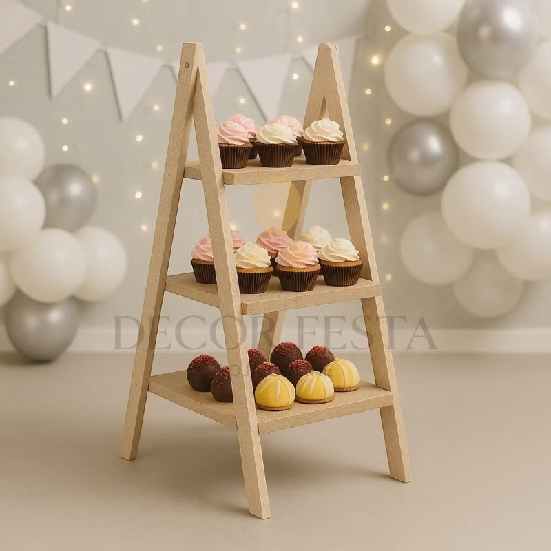 Escada 3 Andares MDF Desmontável Festa Infantil Expositor Doces Lembrancinhas Decorativo