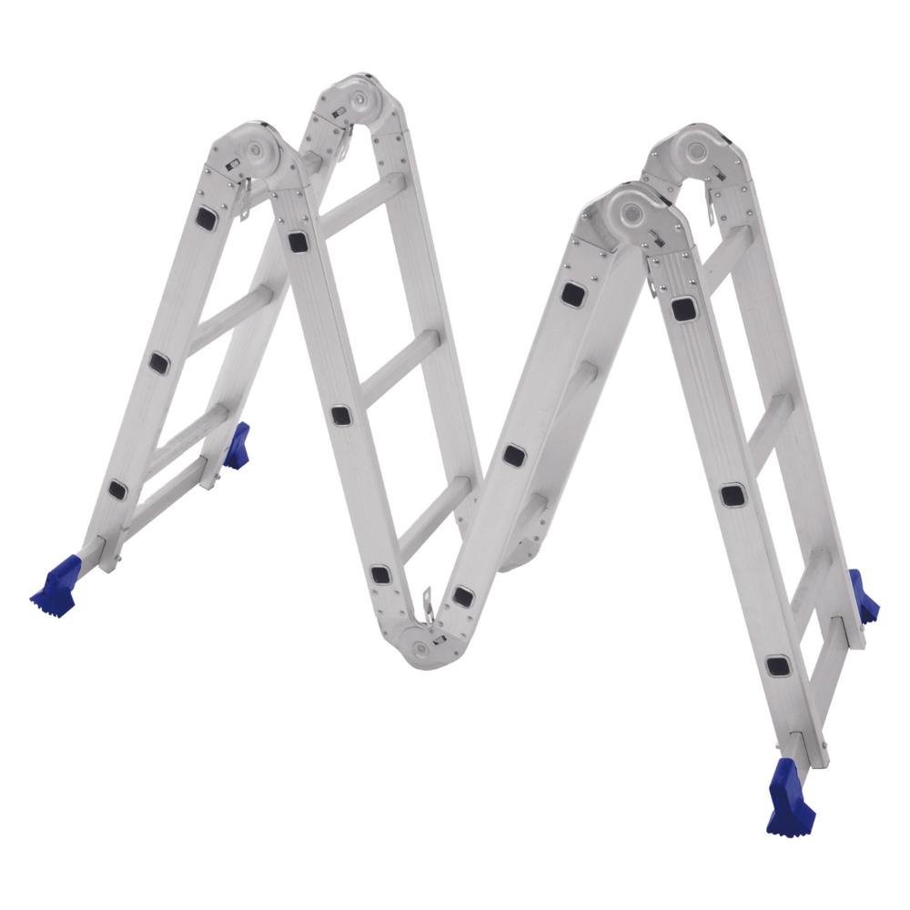 A Escada de Alumínio Multifuncional 4x3 com Plataforma vai te impressionar! São 8 formas de utilização em um só produto. Seu grande diferencial são suas chapas de aço que se encaixam servindo como plataforma, possibilitando utilizar a escada como andaime. Super resistente, suporta até 150 Kg. Possui catracas com excelente qualidade, travamento automático na extensão e ponteiras emborrachadas abauladas para melhor aderência no piso, garantindo segurança total durante seu uso. Estável e versátil, a Escada Multifuncional ainda é fácil de utilizar, em menos de um minuto você pode trocar a posição alcançando superfícies mais altas e lugares de difícil acesso com agilidade. Possui 4 partes de 3 degraus com ranhuras antiderrapantes (12 degraus), alcançando a altura de 3,37m quando totalmente estendida. Sua estrutura é de alumínio, compacta e leve para manuseio, com dobradiças em aço. Por ser totalmente dobrável, ao fechá-la seu volume diminui ocupando pouquíssimo espaço. É a ferramenta que você precisava para as tarefas do dia a dia e para uso profissional! Descrição do produto Marca: Mor Material: Alumínio Capacidade: 150 kg Produto para transporte Altura: 92 cm Largura: 28,5 cm Comprimento: 36 cm Peso: 14,9 kg Imagens meramente ilustrativas, todos os itens que ambientam o produto não estão inclusos.