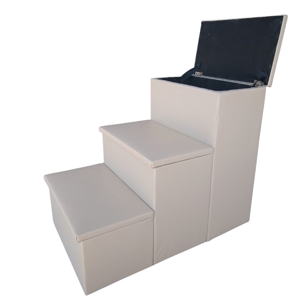 Escada baú pet 3 degraus em madeira e corino escadinha cachorro e gato