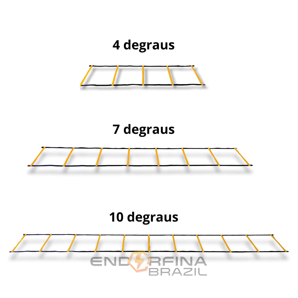 ENVIO IMEDIATO!!! ESCADA DE AGILIDADE TREINO FUNCIONAL 10 DEGRAUS/7 DEGRAUS/4 DEGRAUS - Utilizado para atividades esportivas que visem aprimorar a agilidade, velocidade e coordenação. - Possui opções de 5 METROS com 10 DEGRAUS, 3 METROS com 7 DEGRAUS E 2 METROS com 4 Degraus, todas possuem pontos de fixação. - Dobrável, facilita na montagem desmontagem e transporte. - Degraus especialmente fabricados em fitas de polipropileno flexível inquebrável.