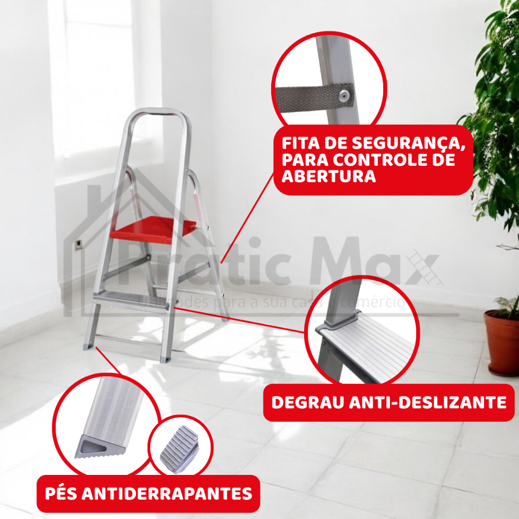 | Escada de Alumínio 2 Degraus Escadinha Tesoura Dobrável Doméstica C... este produto | R$ 130,99 | — | 4.9/5 | 38 |