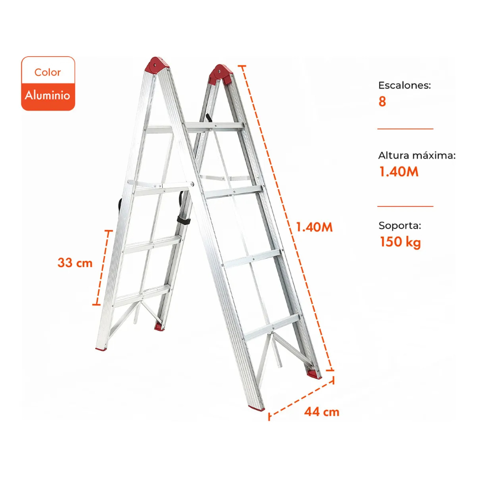 A escada dobrável de alumínio Gardenlife com 8 degraus é a solução perfeita para alcançar lugares altos em sua casa, escritório ou áreas externas. Com uma altura máxima de 1,4 metros, esta escada garante segurança e estabilidade graças aos seus degraus largos e antiderrapantes, assegurando um uso confiável sempre. Seu design dobrável facilita o armazenamento, pois ela se compacta e ocupa pouco espaço quando não está em uso. Fabricada em alumínio de alta qualidade, é leve e fácil de transportar, com capacidade máxima de peso de 150 kg, tornando-a uma ferramenta robusta e versátil. Possui também trava de segurança e pés antiderrapantes, garantindo um uso seguro e confiável. Ideal para qualquer tarefa que exija altura, esta escada é uma ferramenta essencial para sua casa.