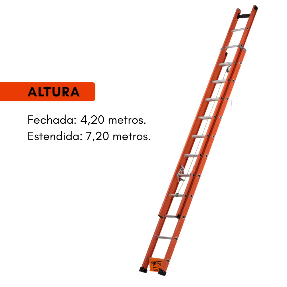 Escada de Alumínio e Fibra de Vidro 23 Degraus Extensível 4,20m X 7,20m com D Vazado EAFD-23 Sintese Alcance novos patamares de segurança e eficiência com a Escada Extensível Profissional de Fibra de Vidro SINTESE EAFD-23. Projetada para o uso intensivo por profissionais dos setores elétrico, de telecomunicações, manutenção predial e industrial, esta escada combina a máxima segurança com durabilidade e um design funcional. Seu grande diferencial são os perfis (montantes) em Fibra de Vidro, que garantem isolamento elétrico superior, tornando-a a ferramenta mais segura para trabalhos próximos a redes energizadas. Os degraus em formato D vazado oferecem uma base de apoio mais ampla, estável e confortável para os pés, aumentando a segurança e reduzindo a fadiga em longas jornadas de trabalho. Com um sistema de extensão prático através de corda e roldana e travas de segurança robustas, a EAFD-23 permite ajustar o alcance de 4,20m até impressionantes 7,20m, adaptando-se perfeitamente às suas necessidades. - Principais Benefícios: * Segurança Elétrica Máxima: Perfis em Fibra de Vidro não condutores de eletricidade, essenciais para a proteção do profissional em trabalhos com risco elétrico. * Conforto e Estabilidade Superior: Degraus em formato D vazado proporcionam uma superfície de apoio mais plana e antiderrapante, oferecendo mais conforto e segurança para os pés. * Durabilidade e Resistência: Construída com materiais de alta qualidade (Fibra de Vidro e Alumínio), é resistente a intempéries, corrosão e ao desgaste do uso profissional contínuo. * Alcance Versátil: Sistema de extensão suave por corda e roldana, com travas de segurança automáticas que garantem o travamento firme em cada degrau, permitindo alcançar até 7,20 metros. * Padrão Profissional: Desenvolvida em conformidade com as normas técnicas de segurança (como ABNT NBR), garantindo um equipamento confiável para as tarefas mais exigentes. - Itens Inclusos na Embalagem: * 1 Escada Extensível Sintese EAFD-23 * Manual de Instruções Características Técnicas: * Marca: SINTESE ESCADAS * Modelo: EAFD-23 * Código (EAN): 7897470126278 * Tipo: Extensível Profissional * Material: Perfis em Fibra de Vidro / Degraus em Alumínio * Capacidade de Carga: 120 kg (Conforme padrões comuns para este tipo de escada) * Número Total de Degraus: 23 (Considerando sobreposição) * Altura Fechada: 4,20 m * Altura Estendida: 7,20 m * Tipo de Degrau: D Vazado (Antiderrapante) * Recursos Adicionais: Sapatas de borracha antiderrapantes, Guias em alumínio, Travas de segurança por gravidade, Sistema de extensão com corda e roldana. - Informações de Garantia: Este produto possui 12 meses (1 ano) de garantia contra defeitos de fabricação, fornecida pela SINTESE ESCADAS. - FAQ (Perguntas Frequentes): * Qual a principal vantagem da fibra de vidro nesta escada? A principal vantagem é o isolamento elétrico. A fibra de vidro não conduz eletricidade, tornando esta escada a opção mais segura para eletricistas e profissionais que trabalham perto de redes ou equipamentos energizados. * O que significa Degrau D Vazado? Significa que o degrau tem o formato da letra D, oferecendo uma superfície mais plana e larga para apoiar os pés, em comparação com degraus redondos. O vazado (com ranhuras ou furos) melhora a aderência e pode reduzir o peso da escada. * Como funciona o sistema de extensão? É seguro? A extensão é feita puxando uma corda que passa por uma roldana, fazendo a seção móvel deslizar sobre guias. A segurança é garantida por travas automáticas (geralmente acionadas pela gravidade) que se encaixam nos degraus da seção fixa, impedindo que a escada deslize para baixo. * Qual o peso da escada? É fácil de transportar? O peso exato pode variar, mas escadas de fibra de vidro deste porte são robustas e, consequentemente, mais pesadas que modelos menores ou de alumínio. São projetadas para serem transportadas por profissionais, muitas vezes em veículos apropriados (como racks em carros utilitários). O transporte geralmente exige duas pessoas para maior segurança e facilidade.