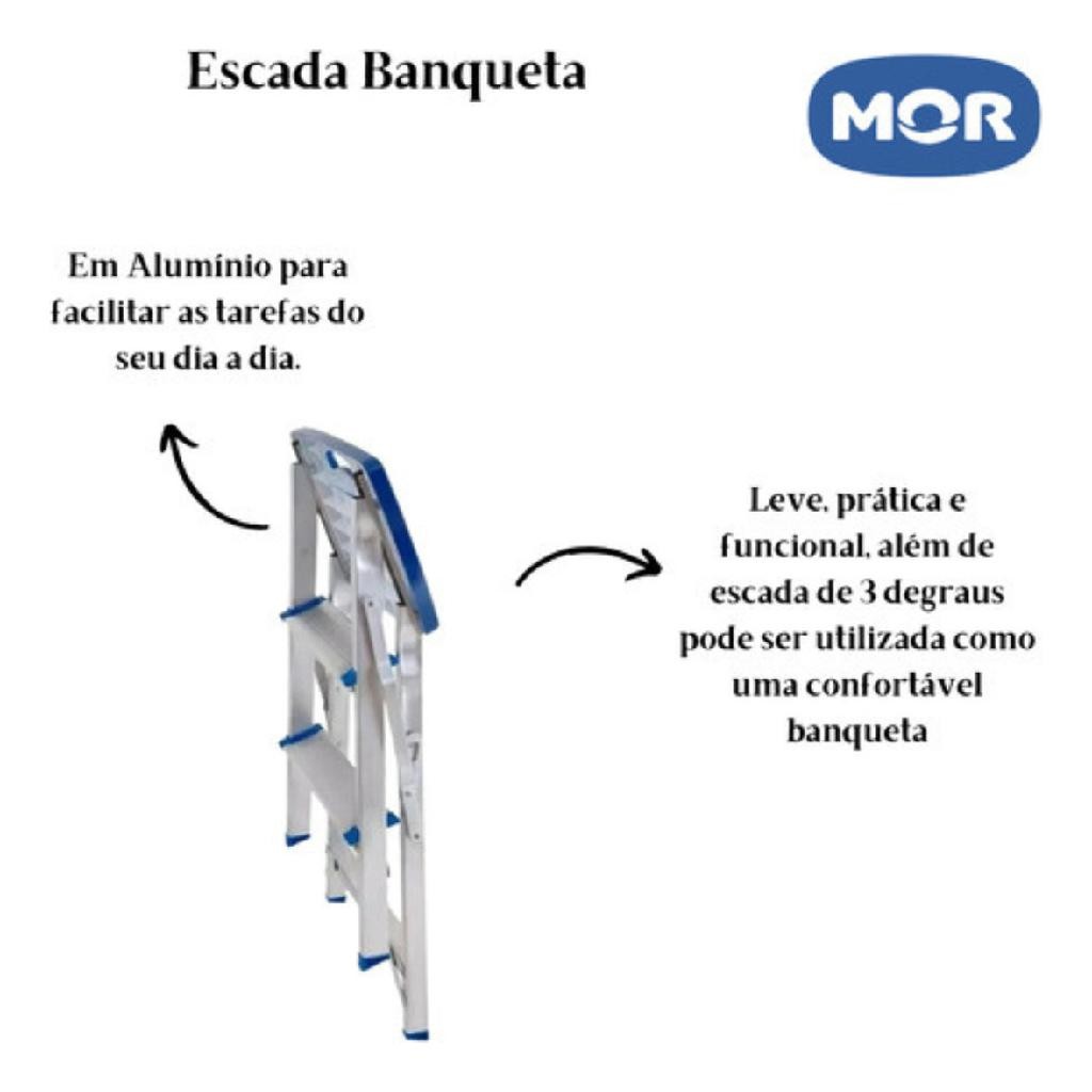 Escada Escadinha Banqueta Alumínio 3 Degraus MOR Resistente Domestica 120 kg