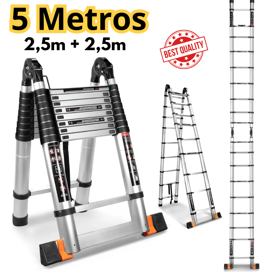 Escada Extensiva até 5 Metros Telescópica Dupla Multifuncional Alumínio Ótima Qualidade