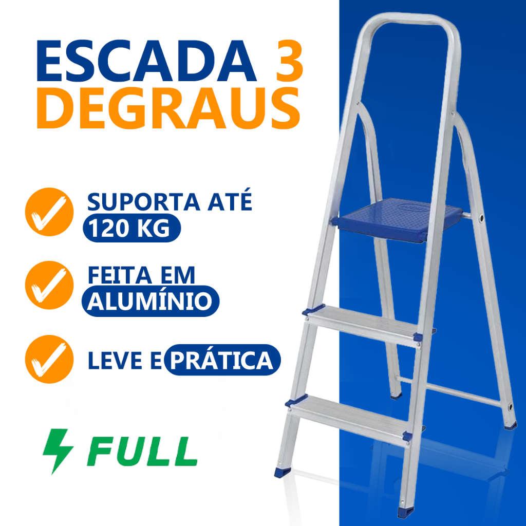 Escada Mor 3 Degraus Dobravel Domestica Resistente Reforçada Articulada Leve Durável Aluminio Suporta 120 kg
