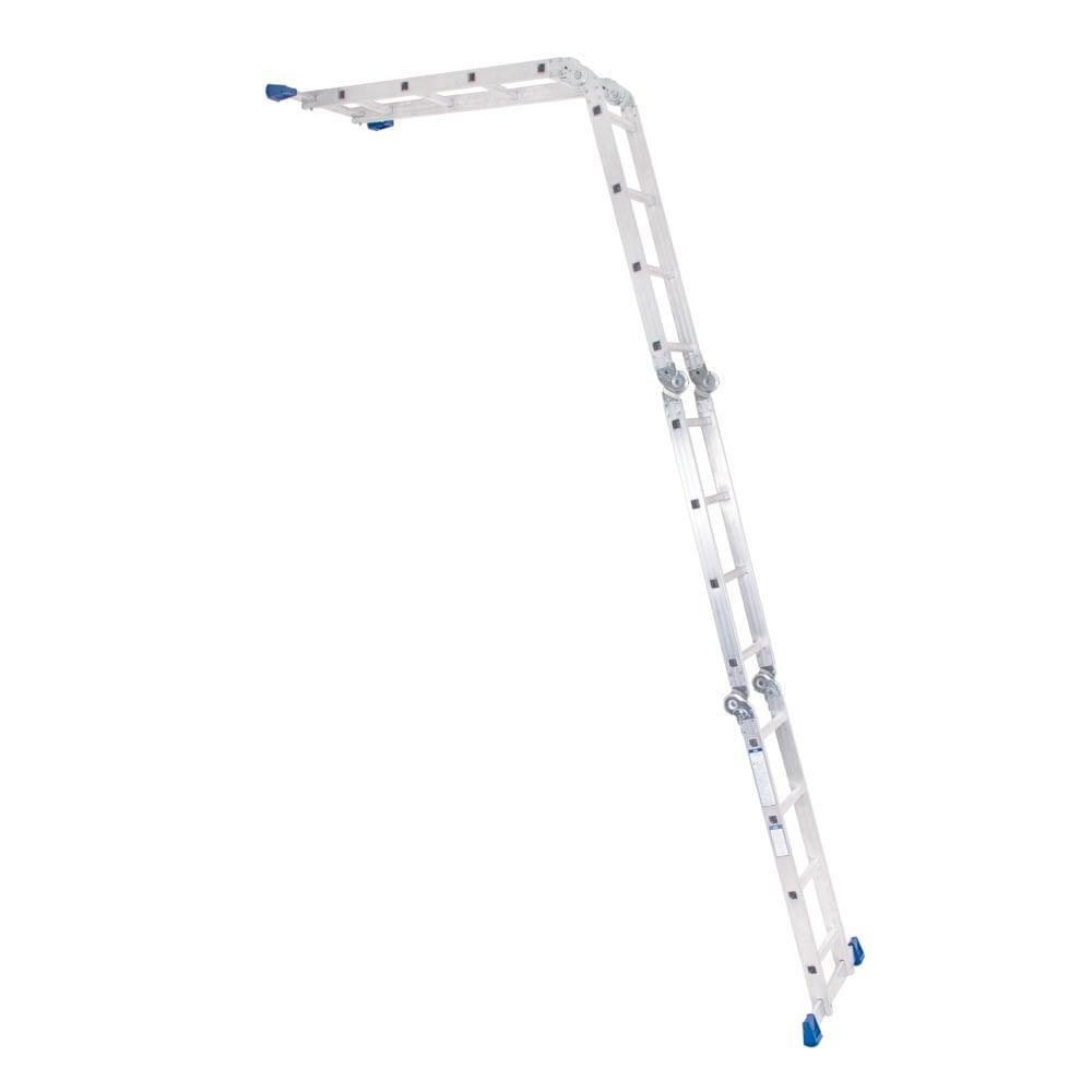 A Escada Multifuncional com Plataforma é prática e muito eficiente. Com ponteiras emborrachadas nos pés, degrau com ranhuras e sistema de trava de segurança ela pode ser montada em até 9 posições diferentes, facilitando na hora do uso. Seu grande diferencial são suas chapas de aço que se encaixam servindo como plataforma, possibilitando utilizar a escada como andaime. Possui pés e degraus em alumínio, dobradiças em aço galvanizado com exclusiva trava de segurança, oferecendo estabilidade e segurança total durante seu uso. Com 4 partes de 4 degraus, alcança a altura de 4,61m quando totalmente estendida. Prática, em menos de um minuto você pode trocar a posição da escada de acordo com sua necessidade. Por ser totalmente dobrável, ao fechá-la seu volume diminui ocupando pouquíssimo espaço, facilitando seu transporte e armazenamento em qualquer lugar. Com 3 anos de garantia, é a versatilidade que você precisava para alcançar as superfícies mais altas e lugares de difícil acesso com muita rapidez e agilidade.
