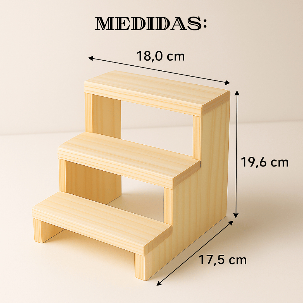 Expositor de Doces Escada 3 Degraus – Pequeno – Madeira Pinus Dê mais charme e organização à sua mesa com o Expositor de Doces Escada 3 Degraus – Tamanho Pequeno. Produzido em madeira Pinus de alta qualidade, ele oferece resistência e beleza, sendo perfeito para destacar doces, lembrancinhas e pequenas decorações em festas, casamentos, eventos corporativos ou até em vitrines comerciais. MEDIDAS: - Pequeno: 17,5 cm (C) x 17,5 cm (L) x 18,5 cm (A) BENEFÍCIO: - Apresentação elegante: valoriza e realça os doces, tornando-os o destaque da mesa. - Organização prática: mantém tudo acessível e bem distribuído. - Versatilidade: ideal para diferentes tipos de eventos e decorações. - Durabilidade: madeira Pinus robusta para uso frequente. - Compacto e funcional: ideal para mesas menores ou composições criativas. CONTEÚDO DA EMBALAGEM: - 1 expositor de doces escada 3 degraus – tamanho pequeno. Adicione sofisticação e praticidade ao seu evento e surpreenda seus convidados com uma apresentação impecável e organizada.
