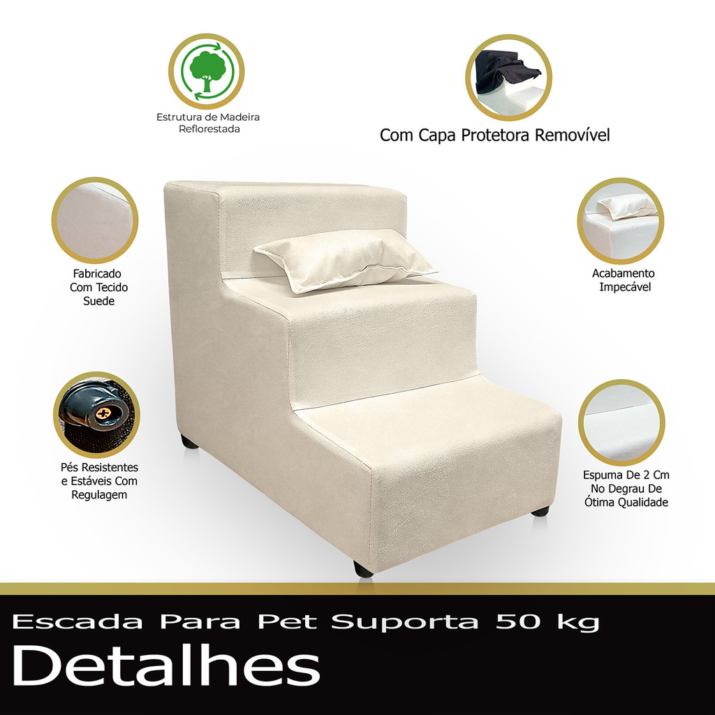 Escada Pet 3 Degraus 20 cm com Capa Removível Cama e Sofá Cães e Gatos Pequenos e Idosos Suede
