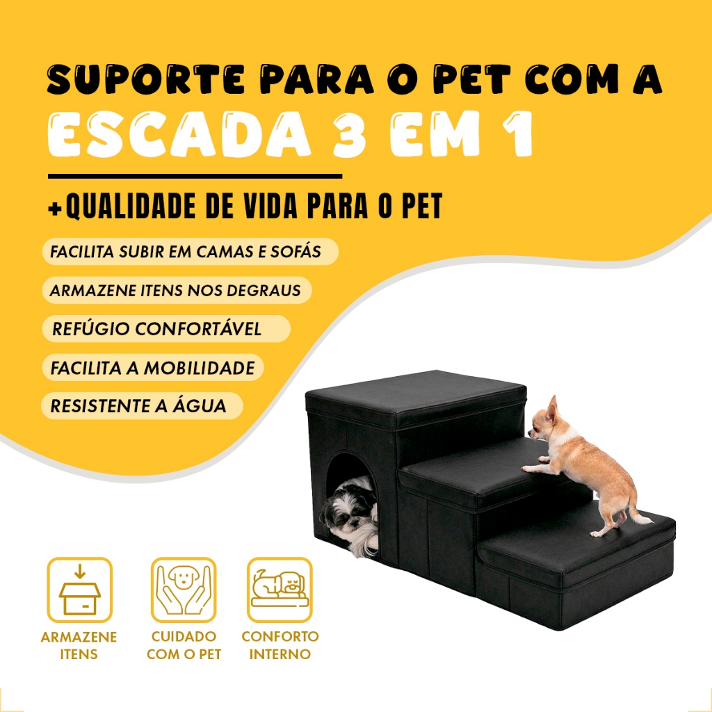 | Escada para Cachorro e Gato com 3 Degraus | R$ 59,90 | 39% | 4.8/5 | 1 |