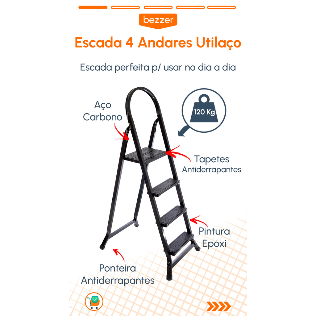 Escada Utilar 04 Degraus Útil Forte Suporta 120Kg Ponteira Emborrachada Utilaço (01 Unidade) Atenção: Temos Variações de cor, escolha a melhor opção que combine com você! Conheça a Escada de 4 Degraus, perfeita para o uso Doméstico do Dia a Dia, Guarde ou pegue seus utensílios em lugres altos. Por ser uma escada em Aço Carbono, ela entrega muita resistência e consegue suporta peso de até 120 kg, seus degraus e ponteiras são compostas por uma borracha antiderrapante que ajuda a evitar acidentes, deslizes ou Riscar o seu piso. Uma Escada versátil, por ser dobrável ela pode ser facilmente guardada em lugares de pouco espaço como garagem, quintal, Laterais de Armários e etc. Perfeita para quem tem muitos utensílios pra pegar ou guarda em lugares altos, Serviços de Armazenamento ou onde você preferir. Compre Agora! E tenha mais praticidade em seu Ambiente e seus Serviços! ..::Características Técnicas::.. :> Altura: 1135 mm :> Largura: 660 mm :> Comprimento: 470 mm :> Suporta: 120Kg :> Borrachas Antiderrapantes Tags: #BanquetaComEscada #Escada3Degraus #BanquetaMultiuso #EscadaDobrável #Praticidade #Segurança #AcessoFácil #DesignCompacto #Versatilidade #BanquetaEscada #EscadaDoméstica #Durabilidade #Funcionalidade #AlcanceExtra #EscadaParaCasa #EscadaPortátil #Conveniência #BanquetaDeAço #MóveisFuncionais #EscadaEstável