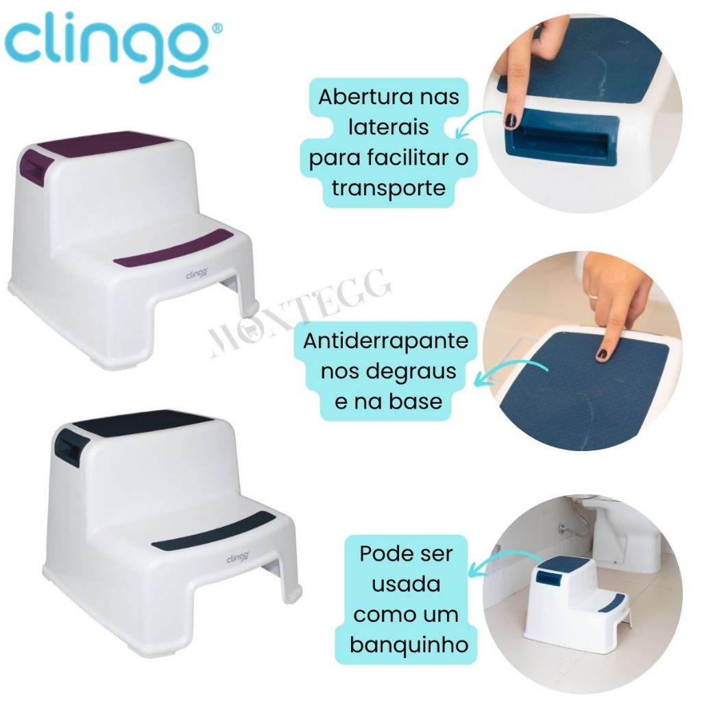 Escadinha Banquinho Degrau Duplo Antiderrapante Infantil Bebe Clingo Apoio Infantil