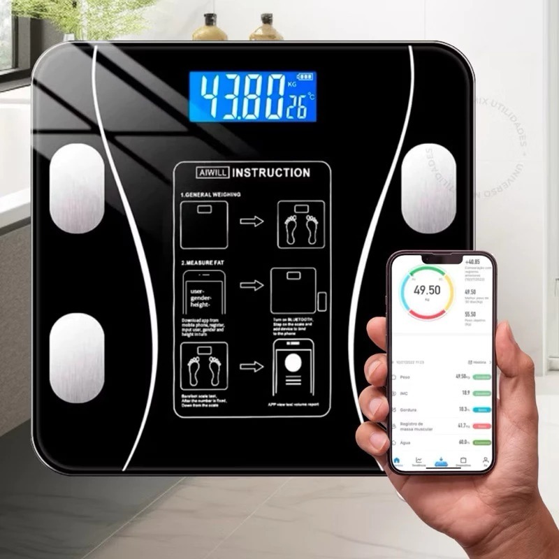 Balança de peso digital inteligente com bioimpedância e aplicação Esta balança de banheiro de bioimpedância é prática e fácil de usar, e é uma escolha ideal para pessoas que buscam um estilo de vida saudável. Além de medir o peso, você também pode obter informações como IMC (índice de massa corporal), gordura, massa muscular, água, massa óssea e metabolismo através do aplicativo. Depois de conectar a escala ao aplicativo, você pode visualizar indicadores de integridade e acompanhar seu progresso por meio de gráficos e histórico. Especificações *A capacidade máxima de carga é de 180 kg * Dados em tempo real * Conecte-se através do Bluetooth 4.0 * Use 2 pilhas AAA * Display LCD digital de 4 dígitos * Sistema de sensores de alta precisão * Liga/Desliga - Automático * Meça o peso corporal, a porcentagem de gordura e a porcentagem de água, o metabolismo, a massa óssea e a massa muscular. * Duas unidades de medida: Kg/Lb * COMPATÍVEL: ANDROID 4.4 E IOS 7.0 (OU POSTERIOR) * Grave os dados de até 8 usuários através do aplicativo (OkOk- Internac Iônico) * Aviso de sobrecarga * Indicação de energia da bateria * Aplicação: OKOK International * Tamanho: 26 cm x 26 cm