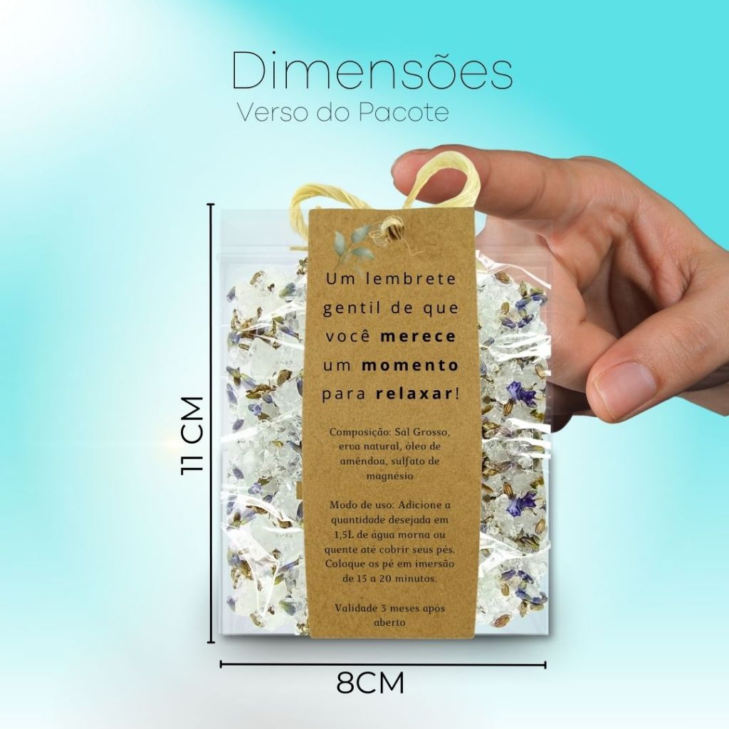 ESCALDA-PÉS RELAXANTE – O CUIDADO QUE VOCÊ MERECE! Imagine chegar em casa depois de um dia cansativo e poder mergulhar seus pés em uma água morna, envolvida por ervas e sais especiais que proporcionam uma sensação de bem-estar imediata. Com nosso Escalda-Pés Artesanal, essa experiência de SPA pode fazer parte do seu dia a dia! O QUE VOCÊ VAI RECEBER: 10 Pacotes de Escalda-Pés 60g cada. Hortelã – Purifica e Estimula Capim Limão – Refrescante e energizante Alecrim – Estimulante e revigorante Os pacotes serão enviados conforme disponibilidade. Respeitando as 3 fragrâncias mencionadas no título do anúncio. OBS: Não fazemos alterações no pedido, caso deseje alguma outra fragrância, quantidade, por favor nos envie sua pergunta. Embalagem Segura e Prática: Saquinho P.P. apropriado para produtos de consumo, que conserva as propriedades dos ingredientes e exala uma fragrância irresistível. POR QUE ESCOLHER NOSSO ESCALDA-PÉS? Diferente dos produtos comuns do mercado, nosso escalda-pés é feito com sal sem iodo, que preserva melhor os minerais benéficos para a pele. O resultado? Uma experiência de relaxamento ainda mais eficaz e natural! UM PRESENTE QUE ENCANTA! Nosso Escalda-Pés é perfeito para diversas ocasiões: Chá de bebê – mimo perfeito para os convidados relaxarem Casamentos – presente delicado para madrinhas e padrinhos Dia das Mães – um gesto de carinho e autocuidado Aniversários – surpresa única e relaxante Natal e datas especiais – um presente encantador Brindes corporativos – demonstre gratidão com um presente especial INGREDIENTES NATURAIS: Sal grosso Magnésio Óleo Hidratante Essências Premium Erva Naturais Hortelã, Capim Limão e Alecrim COMO USAR: -Despeje 1 pacote em uma bacia com água morna até a altura da canela. -Mergulhe os pés e relaxe por 20 minutos. -Seque os pés com uma toalha macia e sinta a diferença! PRECAUÇÕES: Evite contato com os olhos e mucosas. Em caso de irritação, suspenda o uso. Armazene em local seco, longe da umidade e do calor. ESTÁ PRONTA PARA SE CUIDAR E RELAXAR? Garanta o seu agora e transforme sua rotina em uma verdadeira experiência de SPA!