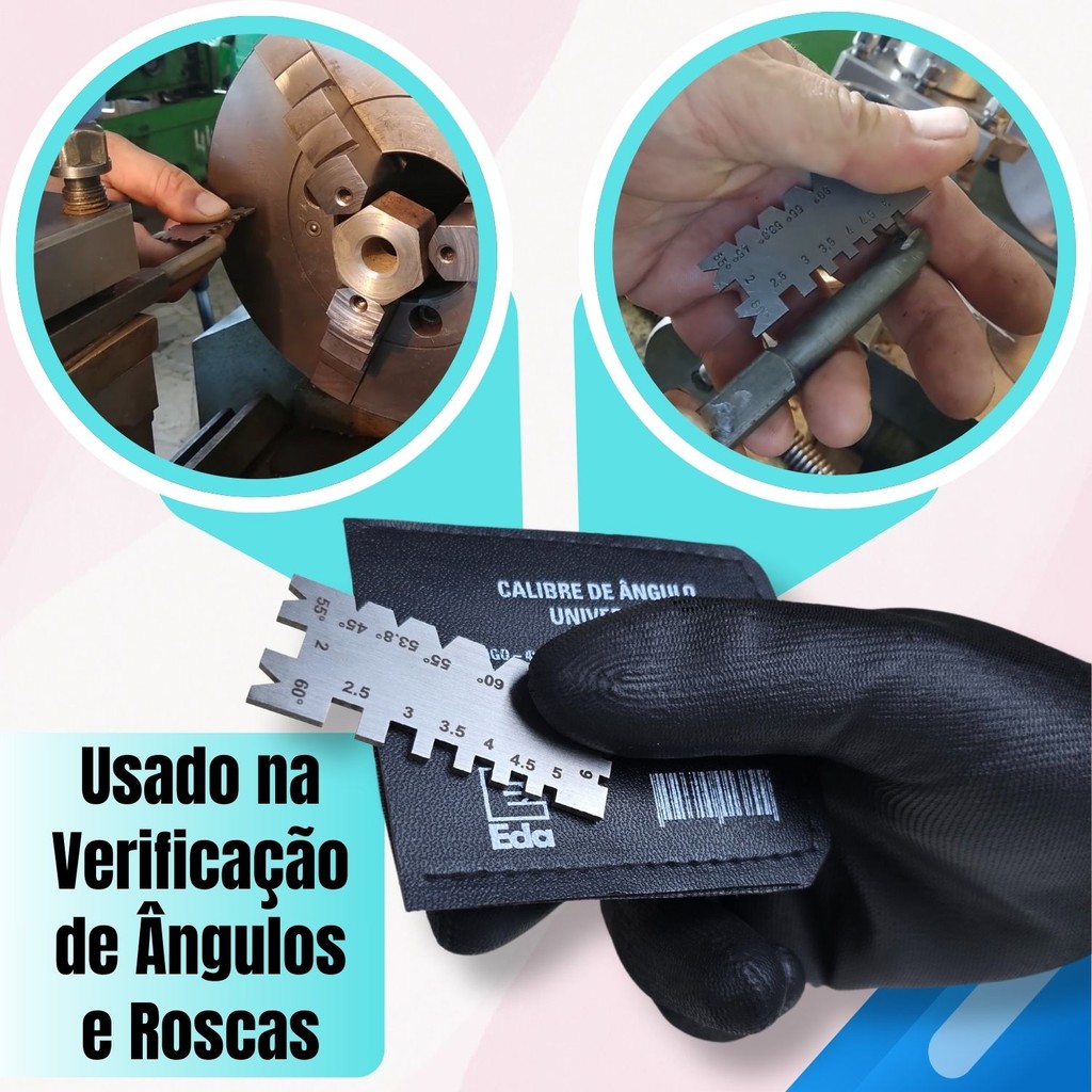 Escantilhão Universal Trapezoidal Calibre Ângulo Rosca Régua 55/60 Graus C/ Case Fita Fio Corte Rosca