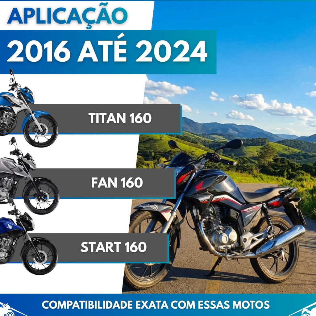CONTEÚDO EMBALAGEM: • 1x ESCAPAMENTO ESTRALADOR DE LATA COM SUPORTE PARA PROTETOR DETALHES: • NÃO ACOMPANHA PROTETOR. • COM SUPORTE PARA MOTO COM BACALHAU. • ESCAPAMENTO DIRECIONADO PARALELO À PLACA. • 2 ABAFADORES. APLICAÇÕES: • Titan 160 (2016 a 2024) • Fan 160 (2016 a 2024) • Start 160 (2016 a 2024) • Cargo 160 (2016 a 2024) MEDIDAS: • Comprimento: 1m. • Diâmetro da conexão: 35mm. SEMPRE recomendamos que a troca ou instalação seja feita por um profissional qualificado e experiente nesse tipo de serviço. NÃO nos responsabilizamos pelo mau uso e/ou má instalação do produto. O escapamento é uma peça responsável por eliminar os gases do motor. Dependendo do modelo, a intensidade do som gerado por esse processo pode aumentar ou diminuir. !!!!!!!!!!!!!!! FOTOS MERAMENTE ILUSTRATIVAS !!!!!!!!!!!!!!! SOBRE NOSSA EMPRESA: Somos uma organização com anos de experiência no mercado. Seja você um apaixonado por velocidade, um aventureiro de estrada ou um entusiasta da personalização, cumprimos a missão de fornecer peças e acessórios da mais alta qualidade para elevar sua experiência de pilotagem a um novo patamar. UTILIZE O CAMPO DE PERGUNTAS PARA TIRAR SUAS DÚVIDAS, e apenas confirme a compra em caso de CERTEZA de compatibilidade do produto! CÓDIGO: COD_38926