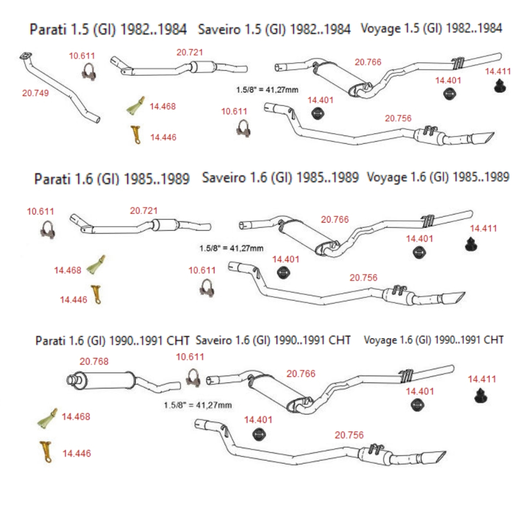 Escapamento Traseiro Volkswagen Saveiro Parati Voyage 1.5 de 1982 até 1984 1.6 de 1985 até 1989