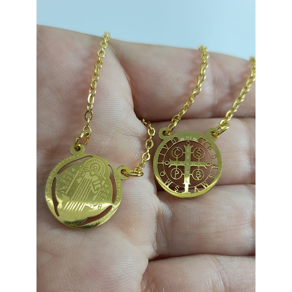 Escapulário Colar São Bento Vazado Banhado a Ouro 18k Protegido Próspero