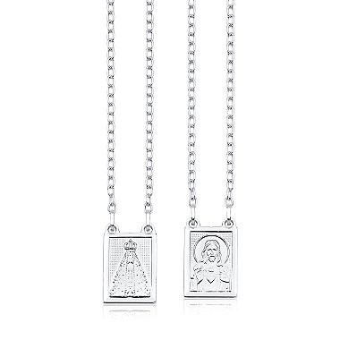 Escapulário de Prata 925 Cadeado Sagrado Coração Jesus e Nossa Senhora Aparecida
