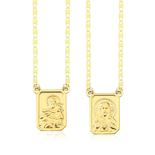 ESCAPULÁRIO MEDALHA TAMANHO PEQUENA MASCULINO E FEMININO TRADICIONAL OURO 18K 750 PESO APROXIMADO 1,60 GRAMAS COMPRIMENTO 65 CM MEDALHAS: NOSSA SENHORA DO CARMO E SAGRADO CORAÇÃO DE JESUS TAMANHO 8,00 MM DE ALTURA E 5 MM DE LARGURA ELOS: LARGURA 1,00 MM COMPRIMENTO 2,70 MM Embalagem para presente e com o nosso Certificado de Garantia Eterna de Ouro 18k/750 Você sabia que o ouro puro é muito maleável e frágil não podendo ser usado na confecção de peças? Para isso, uma porcentagem de ouro é misturada a outros metais – na confecção de joias de ouro 18K/ 750, as ligas possuem 3/4 de ouro puro e 1/4 de outros metais, como prata e cobre. (site IBGE) AQUA JOIAS