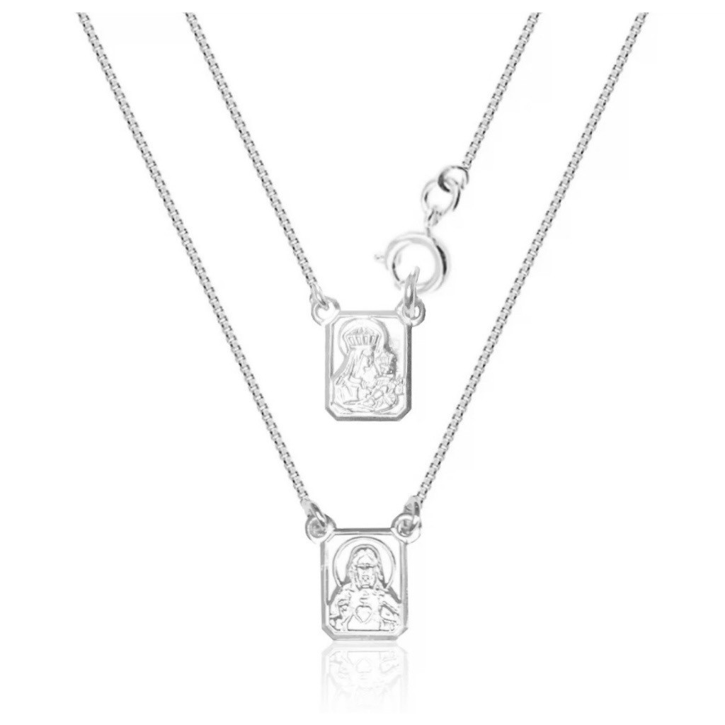 Escapulário folheado a ouro 18 k prata 925 Nossa Senhora do Carmo e Sagrado coração de Jesus pequeno.