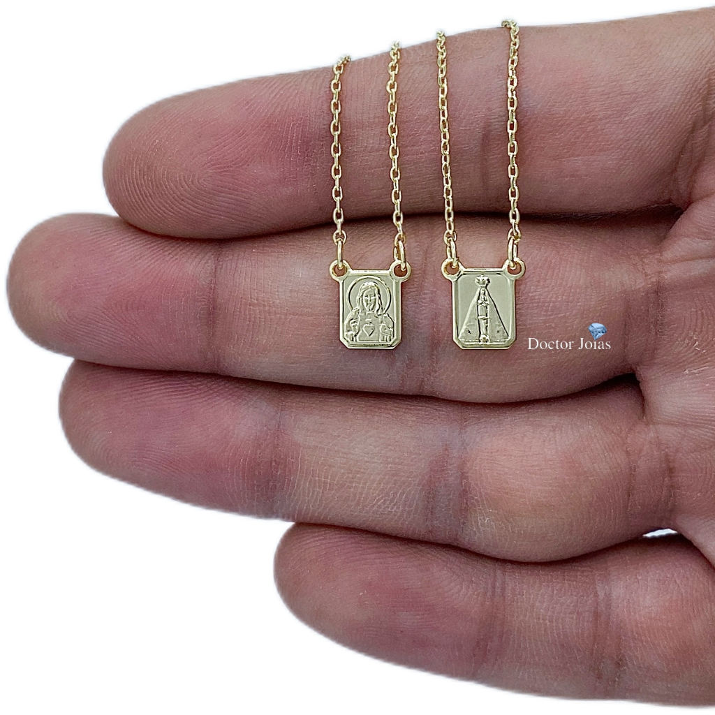 Escapulário Nossa Senhora Aparecida e Jesus Corrente 1mm Banhado a Ouro ou Banhado a Prata