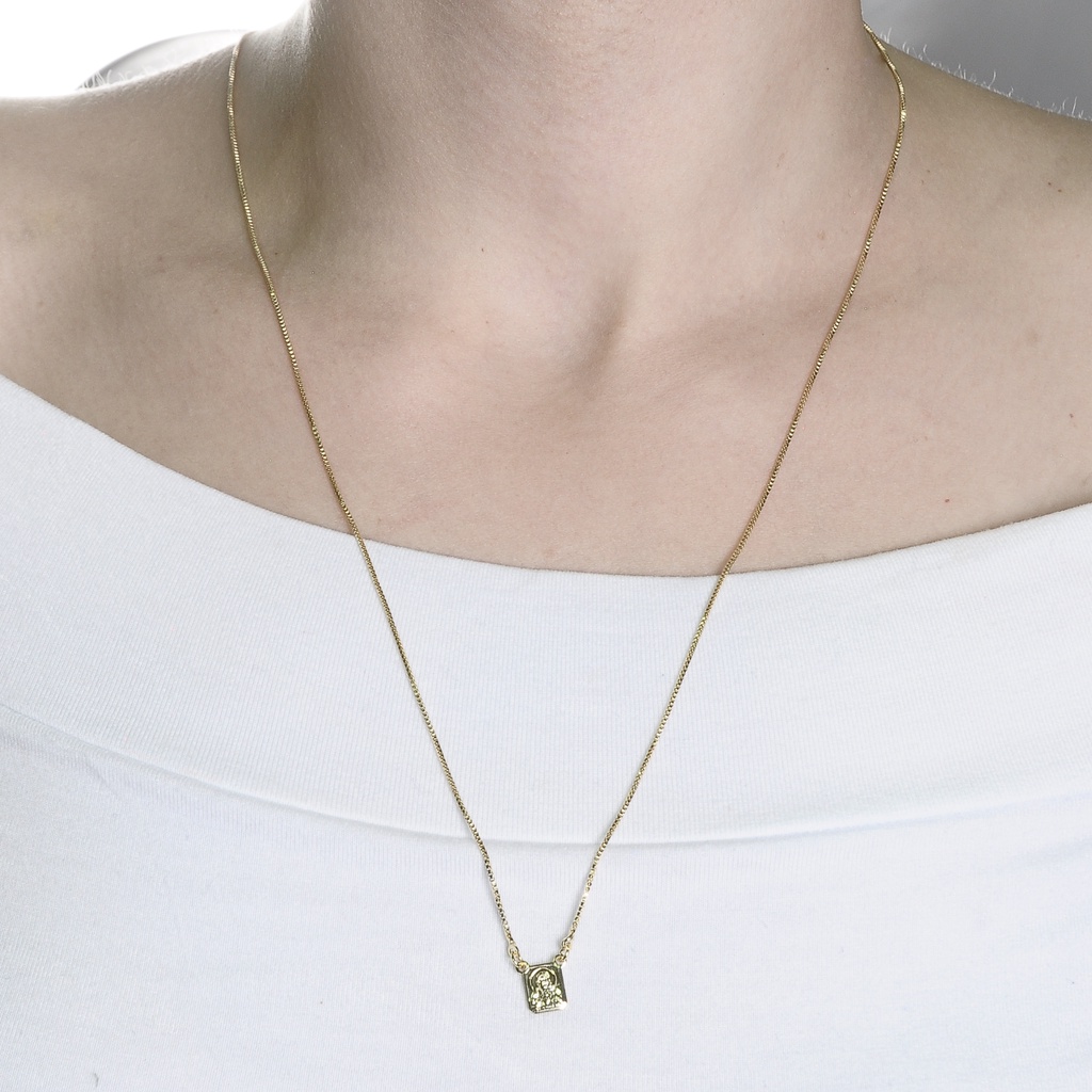 Escapulário Nossa Senhora do Carmo e Sagrado Coração pequeno 60cm Banhado a Ouro