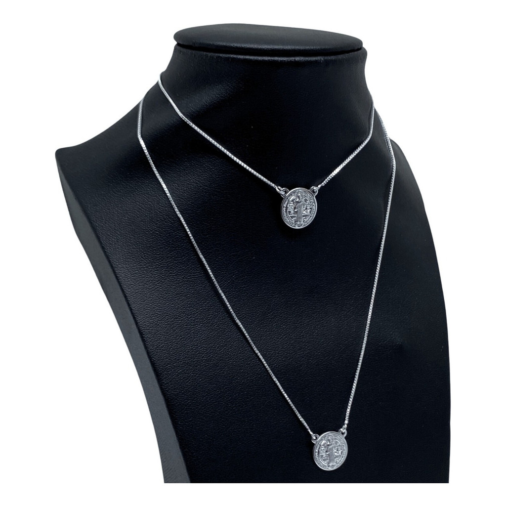 Escapulário Prata 925 Colar São Bento Legítima Masculino/Feminino 60cm Medalha Corrente Cordão
