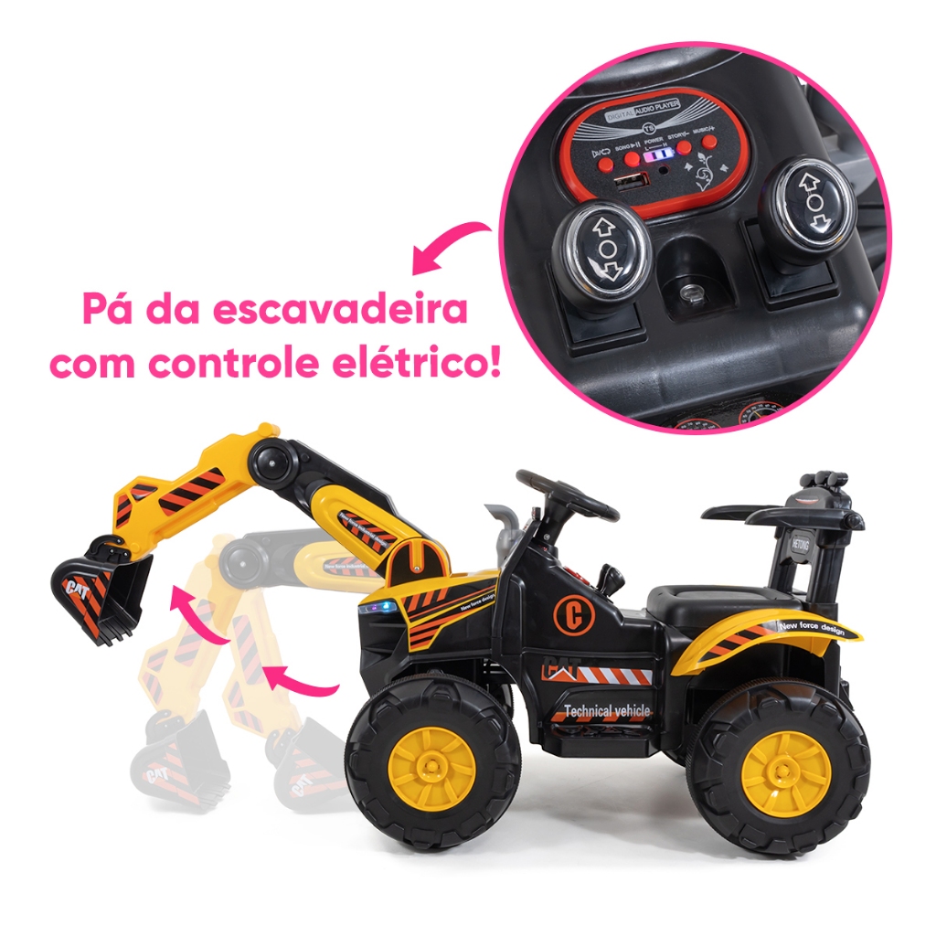 Escavadeira Elétrica Infantil Com Luzes e Som Suporta 40Kg Carro Elétrico Infantil Conect Brinq