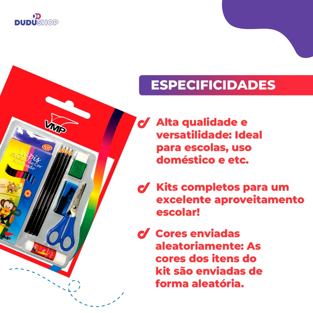 Escolar Completo Com Borracha Lapis Apontador Tesoura Cola A Pronta Entrega VMP
