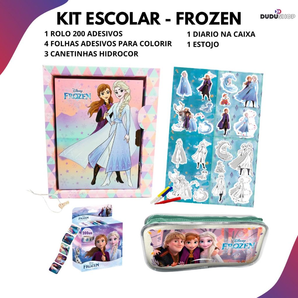 Escolar Diario com Estojo Adesivos Disney Princesas Volta as Aulas Material Escolar Stitch Froze