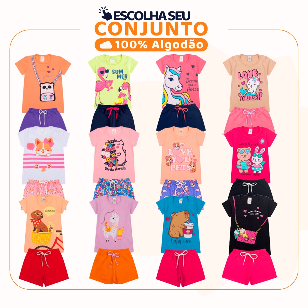 Conjuntos Sortidos Verão para Bebê Meninas, uma coleção versátil e confortável para sua pequena princesa. 👧✨ Perfeitos para dias quentes, passeios e momentos de lazer com sua pequena princesa. ✅ Camisetas e Regatas: Meia malha 100% algodão, e gola redonda com reforço. ✅ Shorts e Saias: Algodão com poliéster, e com elástico confortável na cintura. ✅ Estampas variadas e encantadoras: Muita praticidade e estilo em uma única compra. Sugestão de Tamanho por Idade: Tamanho 2: Ideal para 1 ano Tamanho 3: Ótimo para 2 anos Tamanho 4: Excelente para 3 anos Tamanho 6: Ideal para 4/5 anos Tamanho 8: Perfeito para 6/7 anos Tamanho 10: Excelente para 8/9 anos Os tamanhos podem variar de acordo com o biotipo/tamanho de cada criança. 👉 Consulte a tabela de medidas nas imagens, ou na guia de tamanho da Shopee. Envios em 24 horas 🚛 - Para todos os pedidos realizados antes das 13h. Garanta já o seu conjunto e proporcione o máximo de conforto e estilo para sua princesa!