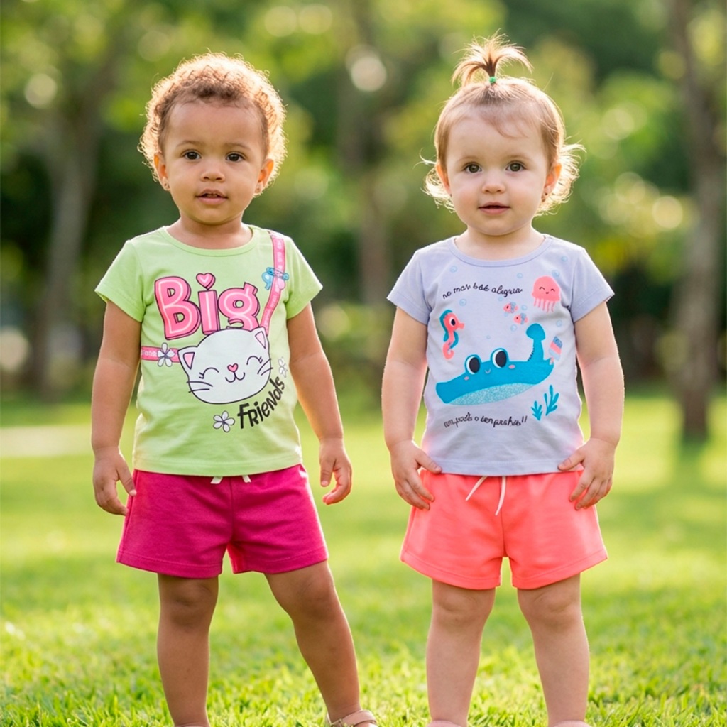 Conjuntos Sortidos Verão para Bebê Meninas, uma coleção versátil e confortável para sua pequena princesa. 👧✨ Perfeitos para dias quentes, passeios e momentos de lazer com sua pequena princesa. - Camisetas e Regatas: Meia malha 100% algodão, e gola redonda com reforço. - Shorts e Saias: Algodão com poliéster, e com elástico confortável na cintura. - Estampas variadas e encantadoras: Muita praticidade e estilo em uma única compra. Sugestão de Tamanho por Idade: Tamanho 1: Indicado para 6 a 12 meses Tamanho 2: Ideal para 1 ano Tamanho 3: Ótimo para 2 anos Tamanho 4: Excelente para 3 anos Tamanho 6: Ideal para 4/5 anos Tamanho 8: Perfeito para 6/7 anos Tamanho 10: Excelente para 8/9 anos Os tamanhos podem variar de acordo com o biotipo/tamanho de cada criança. - Consulte a tabela de medidas nas imagens, ou na guia de tamanho da Shopee. Envios em 24 horas 🚛 - Para todos os pedidos realizados antes das 13h. Garanta já o seu conjunto e proporcione o máximo de conforto e estilo para sua princesa!