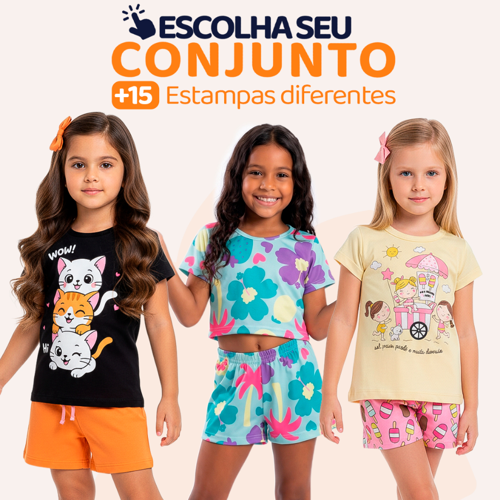 Conjuntos Sortidos Verão para Bebê Meninas, uma coleção versátil e confortável para sua pequena princesa. 👧✨ Perfeitos para dias quentes, passeios e momentos de lazer com sua pequena princesa. ✅ Camisetas e Regatas: Meia malha 100% algodão, e gola redonda com reforço. ✅ Shorts e Saias: Algodão com poliéster, e com elástico confortável na cintura. ✅ Estampas variadas e encantadoras: Muita praticidade e estilo em uma única compra. Sugestão de Tamanho por Idade: Tamanho 1: Indicado para 6 a 12 meses Tamanho 2: Ideal para 1 ano Tamanho 3: Ótimo para 2 anos Tamanho 4: Excelente para 3 anos Tamanho 6: Ideal para 4/5 anos Tamanho 8: Perfeito para 6/7 anos Tamanho 10: Excelente para 8/9 anos Os tamanhos podem variar de acordo com o biotipo/tamanho de cada criança. 👉 Consulte a tabela de medidas nas imagens, ou na guia de tamanho da Shopee. Envios em 24 horas 🚛 - Para todos os pedidos realizados antes das 13h. Garanta já o seu conjunto e proporcione o máximo de conforto e estilo para sua princesa!