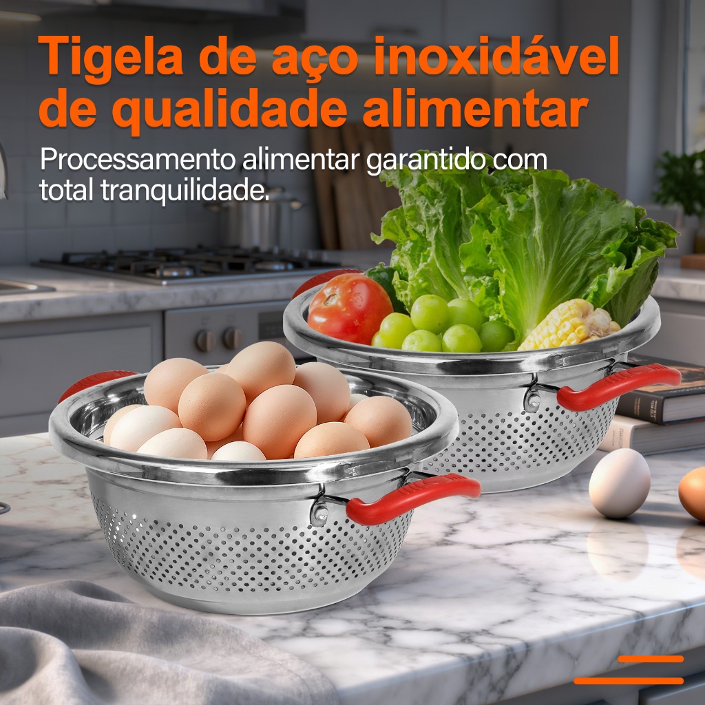| Escorredor de Alimentos Inox Cesto para Lavar Frutas e Verduras 24/... este produto | R$ 49,90 | 54% | 4.9/5 | 5 |