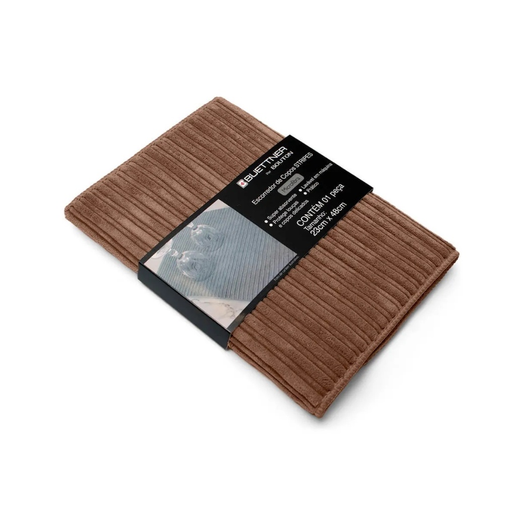 O Escorredor de Copos Cooking Stripes da Buettner é a opção perfeita para aqueles que buscam praticidade e eficácia para o dia a dia na cozinha. Confeccionado em microfibra de alta qualidade, proporciona uma capacidade de absorção excepcional, possibilitando que seus copos sequem de forma rápida e sem deixar marcas de água. O seu elegante design de listras confere um ar moderno e sofisticado, além de ser prático, evitando manchas e riscos nas superfícies dos copos. Compacto, leve e de fácil limpeza, é ideal para uso diário. Todas as informações divulgadas são de responsabilidade do fabricante/fornecedor. Marca: Buettner Classificação: Cozinha Tecido: Tecido 80% Poliéster - 20% Poliamida Composição (Fios): Enchimento 100% Poliuretano Face Inferior Tecido 100% Poliester Conteúdo e Medidas: Escorredor Microfibra para Copos Cooking Favos - 01 Peça Tamanho(0,23cm x 0,48cm ) Produto Importado e Distribuído por Bouton Coleção / Sortimento: Linha Cooking Favos Cor: Super Absorção Protege Louças Delicadas e Taças Lavável em Máquina Prático Fabricante: China Referencia: 33001 Código de Barra: 7892409168947 Garantia(Fabricante): Contra Defeito de Fabricação Imagens Meramente Ilustrativas INFORMAÇÕES IMPORTANTES: Item composto apenas por 01 Escorredor Copo, os demais itens são meramente decorativos e NÃO fazem parte do conteúdo da embalagem. Aviso : - Todas as medidas são valores aproximados e podem sofrer alguma variação. - As cores podem sofrer uma pequena variação, dependendo do lote do produto e das configurações do seu computador.