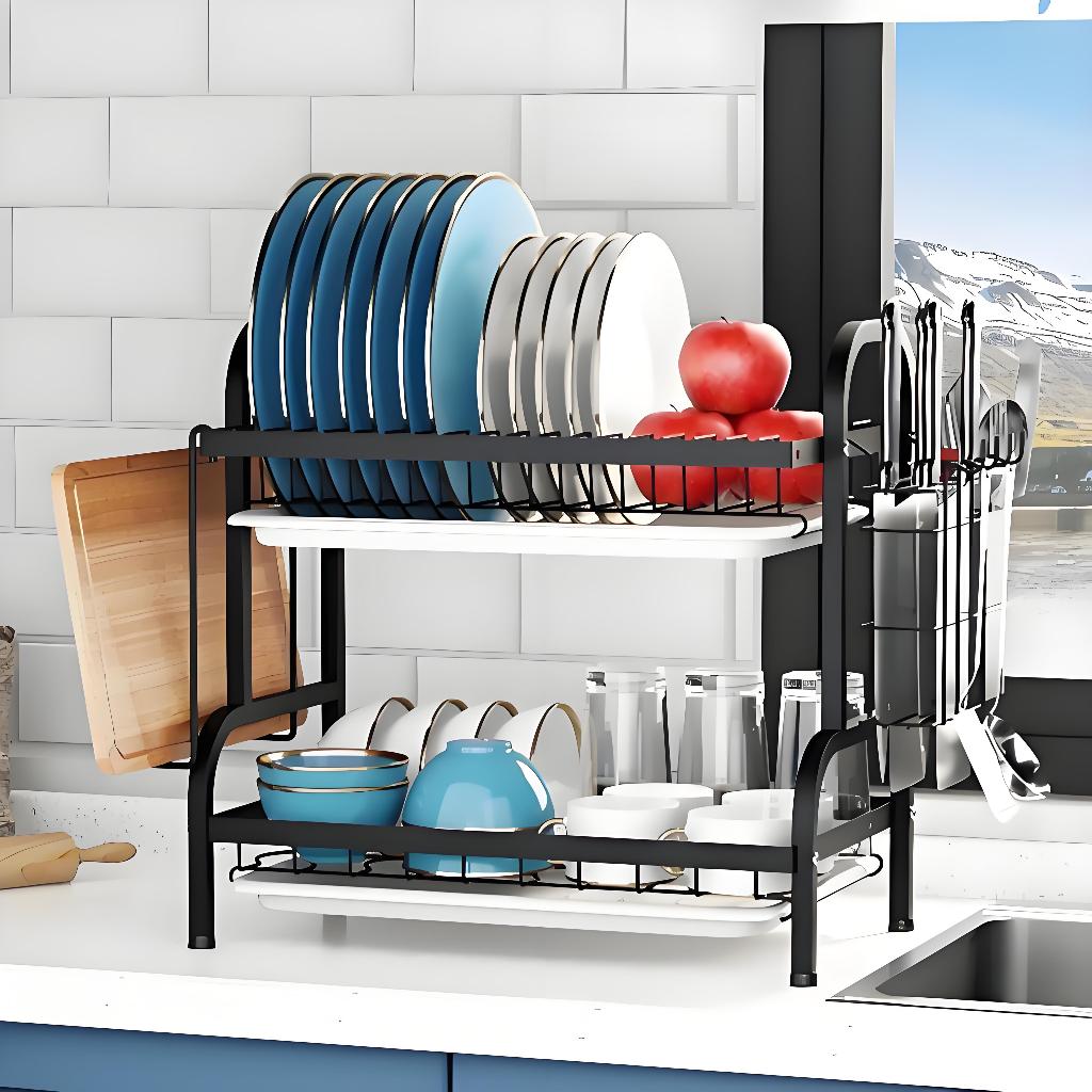 Escorredor de Escorredor de Louças 2 Andares 43x53cm - Organizador em Aço Inoxidável Preto para CozinhaLouças 2 Andares