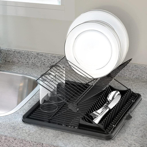 Escorredor De Louça 15 Copos pratos Com Bandeja Cor Preto
